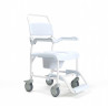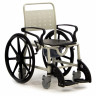 Кресло-коляска имеет 4 маленьких и 2 больших задних съемных колеса. Большие колёса позволяют пользователю передвигаться на стуле без посторонней помощи. Тормоза на каждом колесе позволяют зафиксировать кресло на месте, если это необходимо.  Подножки кресла-туалета можно снять.