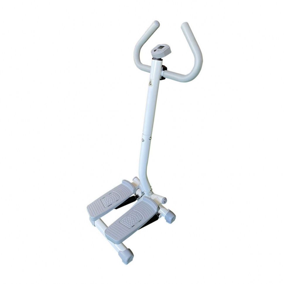 Популярный мини-степпер с поручнем в новом исполнении. Поворотная модель. Удобные поручни для рук.  Система нагружения — 2 гидравлических цилиндра Взаимозависимый ход педалей Нескользящая поверхность платформ для ног Компьютер: время тренировки, количество шагов за тренировку, ритм, суммарная дистанция, израсходованные калории. Питание компьютера от 1 батарейки (тип ААА, приобретается отдельно) Максимальный вес пользователя: 100 кг Размеры в рабочем положении: 42 х 53 х 120h см Размеры упаковки: 40 х 48,5 х 28,5 см Вес: 10,3 кг Бренд: DFC Страна производства: Китай Гарантия: 12 месяцев Инструкция скачать