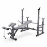 Максимальная нагрузка на стойки для штанги равна 100 кг, а расстояние между стойками 76 см. Скамья также оснащена ручным рычагом с максимальной нагрузкой до 40 кг и нагрузкой на рычаг для валиков до 80 кг. Весовые пластины не входят в комплект, но их можно приобрести отдельно.