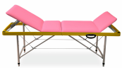 Складной трёхсекционный стол выполнен из экологичных материалов, имеет качественную обивку, которая легко очищается и по характеристикам превосходит даже натуральную кожу, позволяя столу сохранять былой вид даже через много лет, а крепкая конструкция выдержит высокую нагрузку до 200 кг. Это достижимо благодаря использованию при производстве рамы влагостойкой фанеры, а ножек — алюминия. При этом прочность и надежность конструкции выгодно отличают стол от аналогичных моделей. У данной модели есть возможность регулировать высоту от 650 до 900 мм с шагом в 50 мм. Мягкое покрытие стола выполнено из упругого полиуретана, который отлично принимает форму тела и не вызывает дискомфорта. Полиуретан покрыт высококачественной искусственной кожи, неприхотливой в обслуживании, обладающей высокой износостойкостью и устойчивой к загрязнениям.