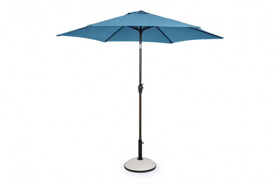 Зонт САЛЕРНО от итальянского бренда Bizzotto с диаметром купола 2,70 м - элегантное и современное решение для защиты от солнца в течение всего дня в зонах отдыха. Имеет 6 усиленных спиц и большой купол, что обеспечит затенение сразу нескольких столиков в летнем кафе или нескольких шезлонгов на пляже.